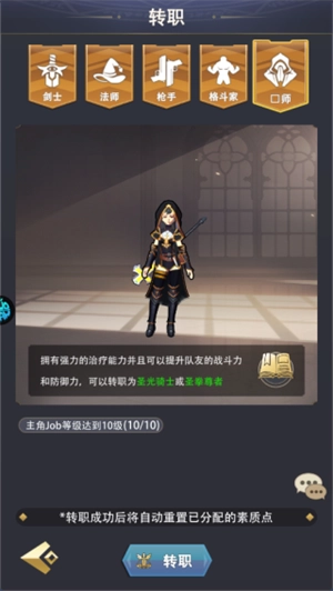 口师:后期可转职为圣光骑士或圣拳尊者。