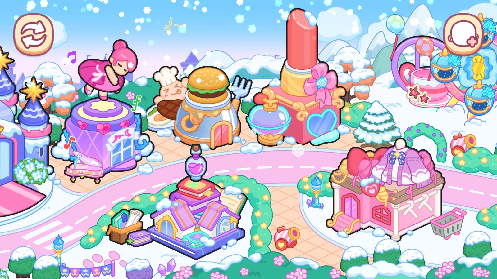 你是否曾幻想过踏入公主的奇妙世界,亲身感受她们的生活日常?别犹豫,这里就是你的理想之地!在艾拉打造的公主世界里,你就是备受宠爱的小公主!你拥有一座专属的冰城堡,和艾尔莎公主那座宏伟的城堡如出一辙!除此之外,还有各式各样的特色建筑——充满浪漫氛围的婚纱店、神秘的魔法学校、乐趣无穷的游乐园、精致高端的美容院等等,我们的小公主们都能尽情地自由探索!