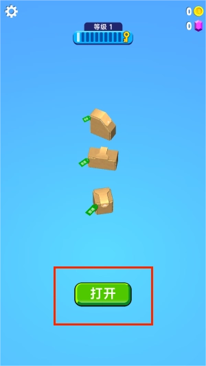 应用启动后,点击屏幕中间闪烁的“打开”按钮,就能开启拆盒挑战啦。