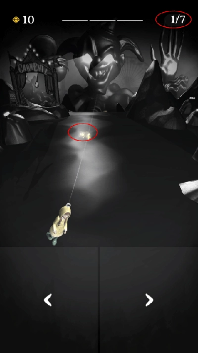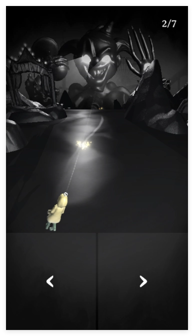 进入游戏后,借助左右按键来调节角色的摆动幅度,在阴森的暗黑场景里移动。
