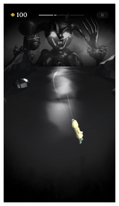 玩家只需通过左右按键调整角色的摆动幅度来避开障碍物,只要三次经过游戏里的眼睛,就能唤醒吊坠中的灵魂。