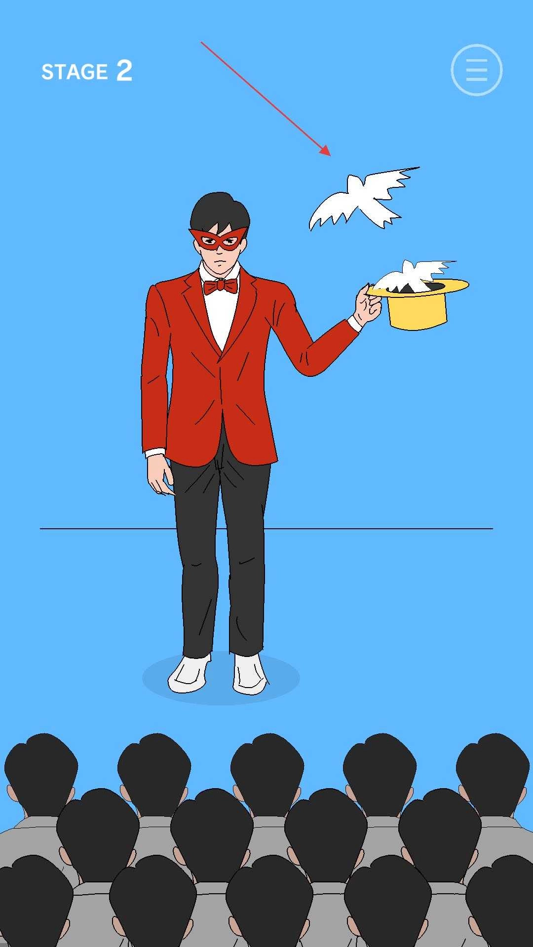 之后,魔术师从帽子里变出了白鸽,结束了这一阶段的魔术表演,成功推动游戏流程,进入到了后续的环节。