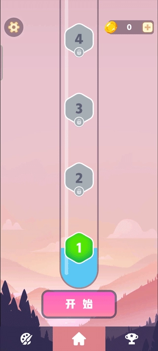游戏界面里的关卡设计成试管的样子,每闯过一关就会往试管里注入少许液体,这个设定还挺有意思的。