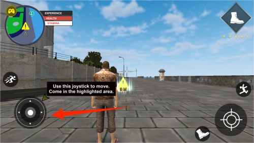 屏幕左下角的圆形方向键是用来操控角色行进路线的,按住并滑动它就能调整移动方位。