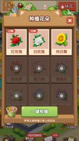 设有订单任务系统,可依据订单需求针对性种植花卉,完成订单可获取丰厚奖励,订单数量越多,收获的回报也越可观。