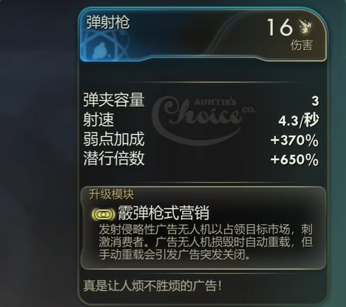 在游戏内有一个可以射出广告牌子嘲讽敌人的特殊武器“弹射枪”