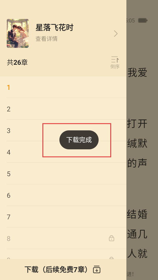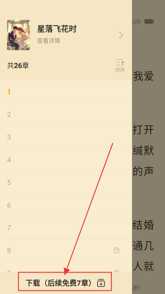 进入目录页面后,就能看到各个章节啦。要是想阅读小说章节,记得点击【(后续免费7章)】哦。