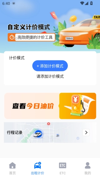 软件提供出租计价功能,支持自定义计价模式。