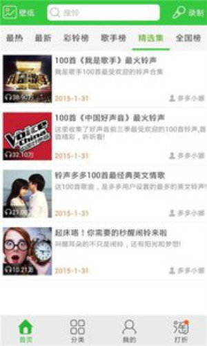 你可以在搜索栏里查找自己钟爱的铃声,也能通过浏览各类分类和排行榜来发现心仪的铃声。