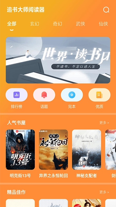 功能多样:追书大师配备了在线搜索、书籍管理、阅读等多种实用功能。