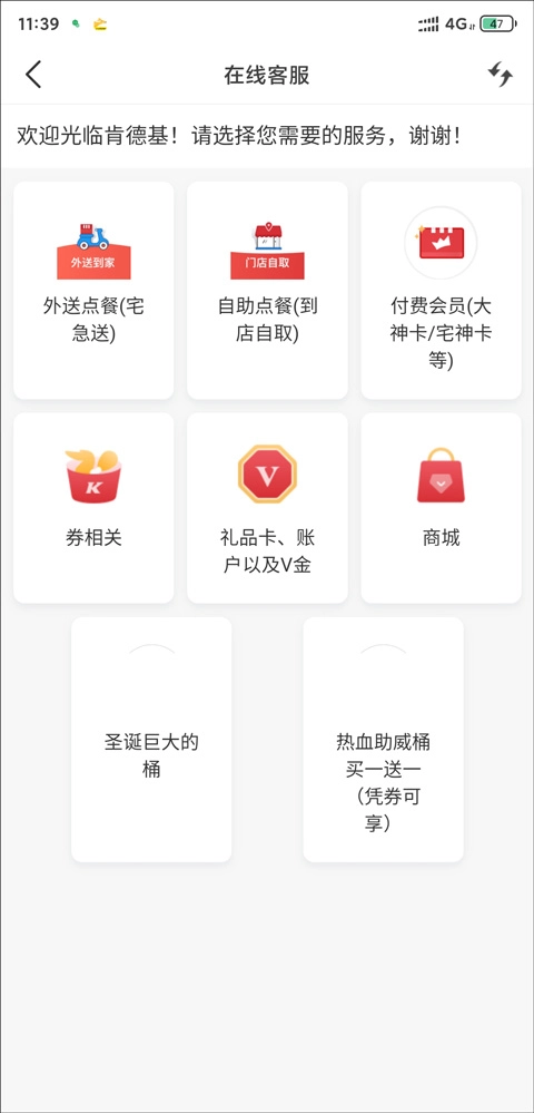 也可点击在线客服选项,点击上面的外送点餐选项。