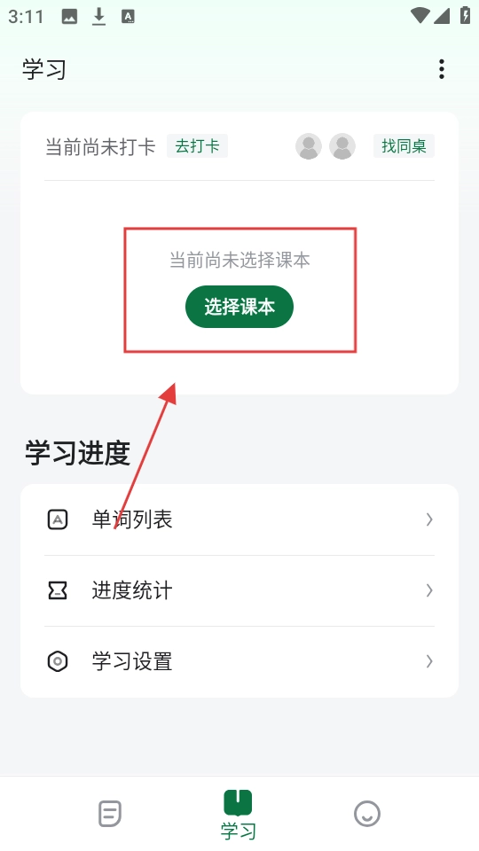 在学习页面,如果还没有选定课本,点击【选择课本】按钮,就能进入课本选择界面去挑选合适的课本。