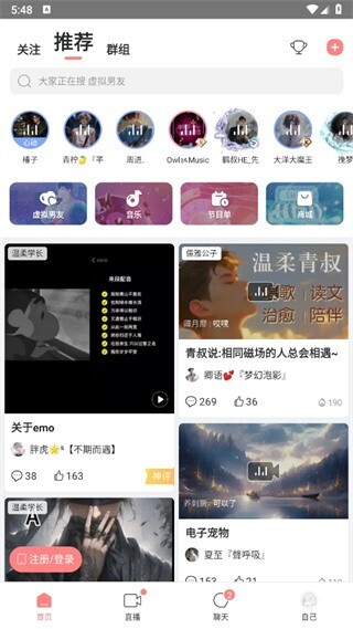 声优互动:各类声线主播,治愈系声音,互动畅谈。