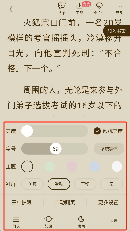 阅读界面设有字体大小、背景颜色、翻页方式等多种可自定义的设置选项,用户能够依据自身偏好进行调整。