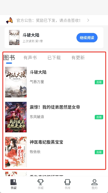 免费书城的所有书籍都能一键缓存,不用网络也能随时阅读!