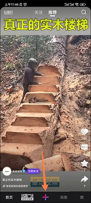 进入腾讯微视后点击底部的加号;