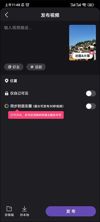 最后添加一个视频描述的文案点击发布就好了。