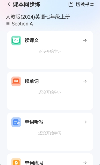 登录后,你可以在首页挑选适合自己的学习板块,像同步教材练习、听说模拟考试之类的都有。