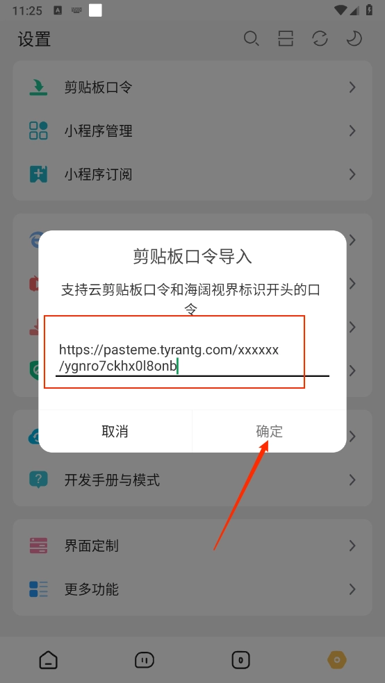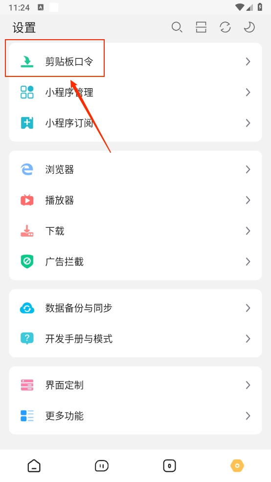 在设置页面点击"剪切板口令"一键打开。