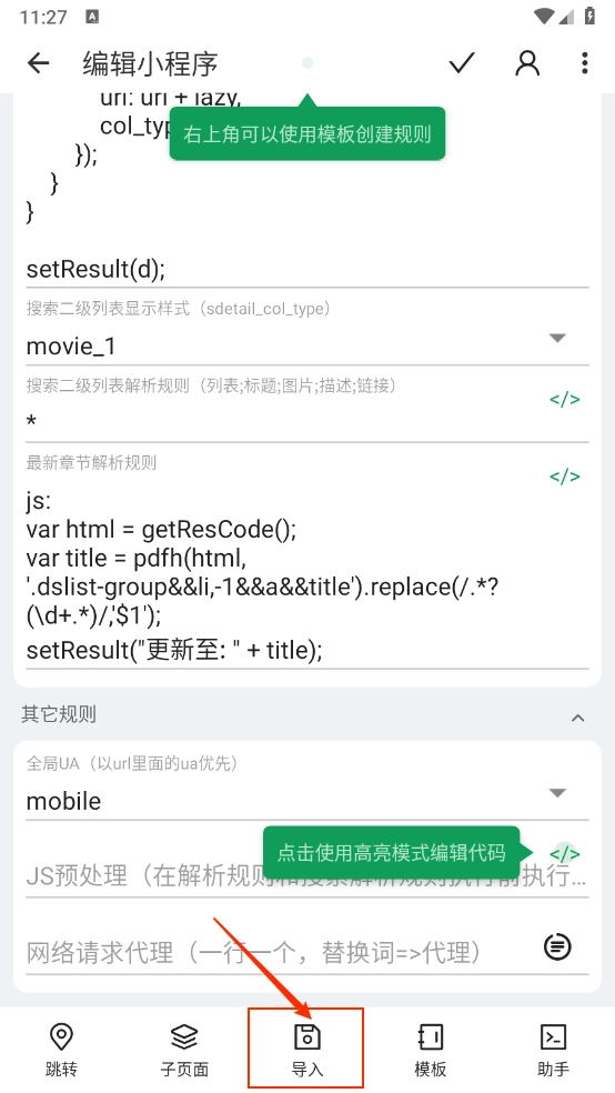 之后会自动跳转到小程序编辑页面,点击底部的“导入”按钮。