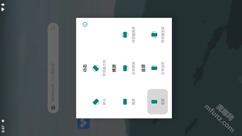 除了固定的竖屏与横屏锁定功能外,还额外提供反向竖屏和反向横屏的锁定选项。
