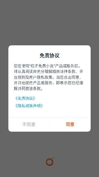 打开桔子小说软件,需要通过用户协议进入;