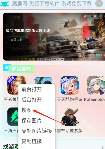点击“图搜片”,选择图片或截图发送给小海浏览器。