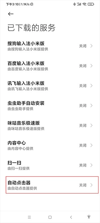 在界面中找到自动点击器,将其功能开启。