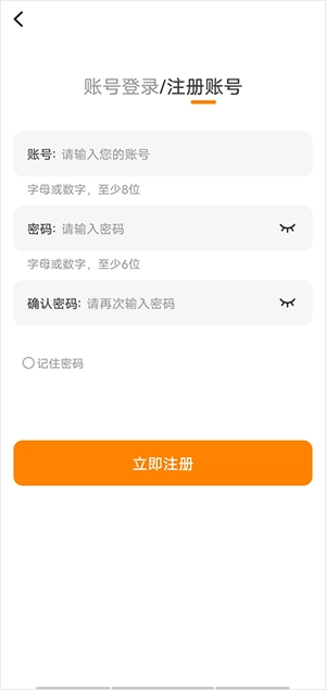 选择“注册账号”选项,依次填写账号名、密码等相关信息,最后点击“立即注册”按钮,即可完成账号注册流程。