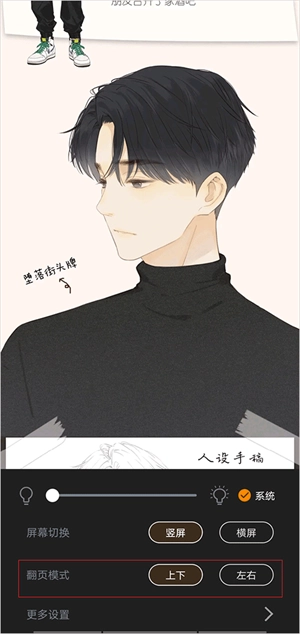 在漫画阅读界面点击屏幕即可唤起设置菜单,你可以在菜单里切换不同的翻页模式,选择一个符合自己操作习惯的模式。