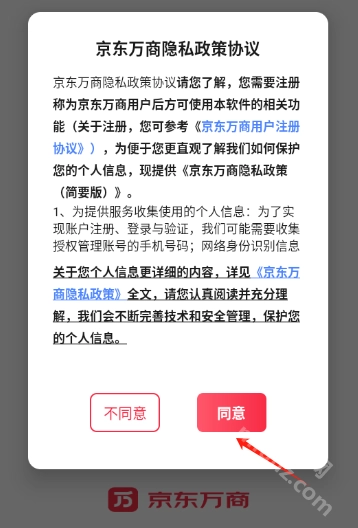 安装京东万商,点击同意
