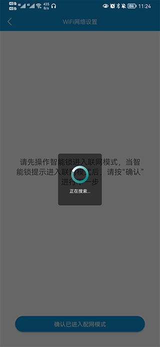 四、根据提示将智能锁切换至联网模式,随后等待设备搜索完成并连接即可(需确保门锁与手机处于同一WiFi网络环境下,否则手机将无法搜索到该设备)