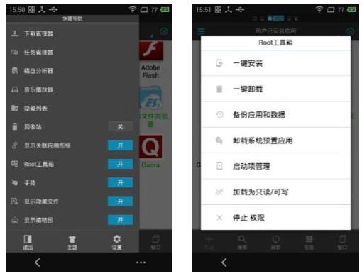 若您的安卓设备已成功获取Root权限,在授予ES相应权限后,即可使用下方Root工具箱内的各项功能。