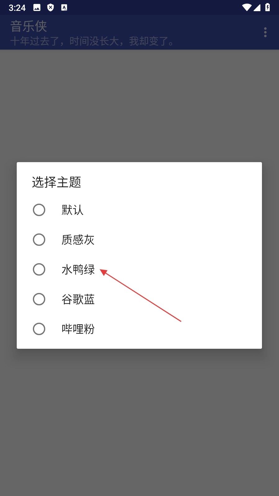 在主题选择弹窗中,挑选【水鸭绿】这一选项,以此完成界面主题的更换操作。