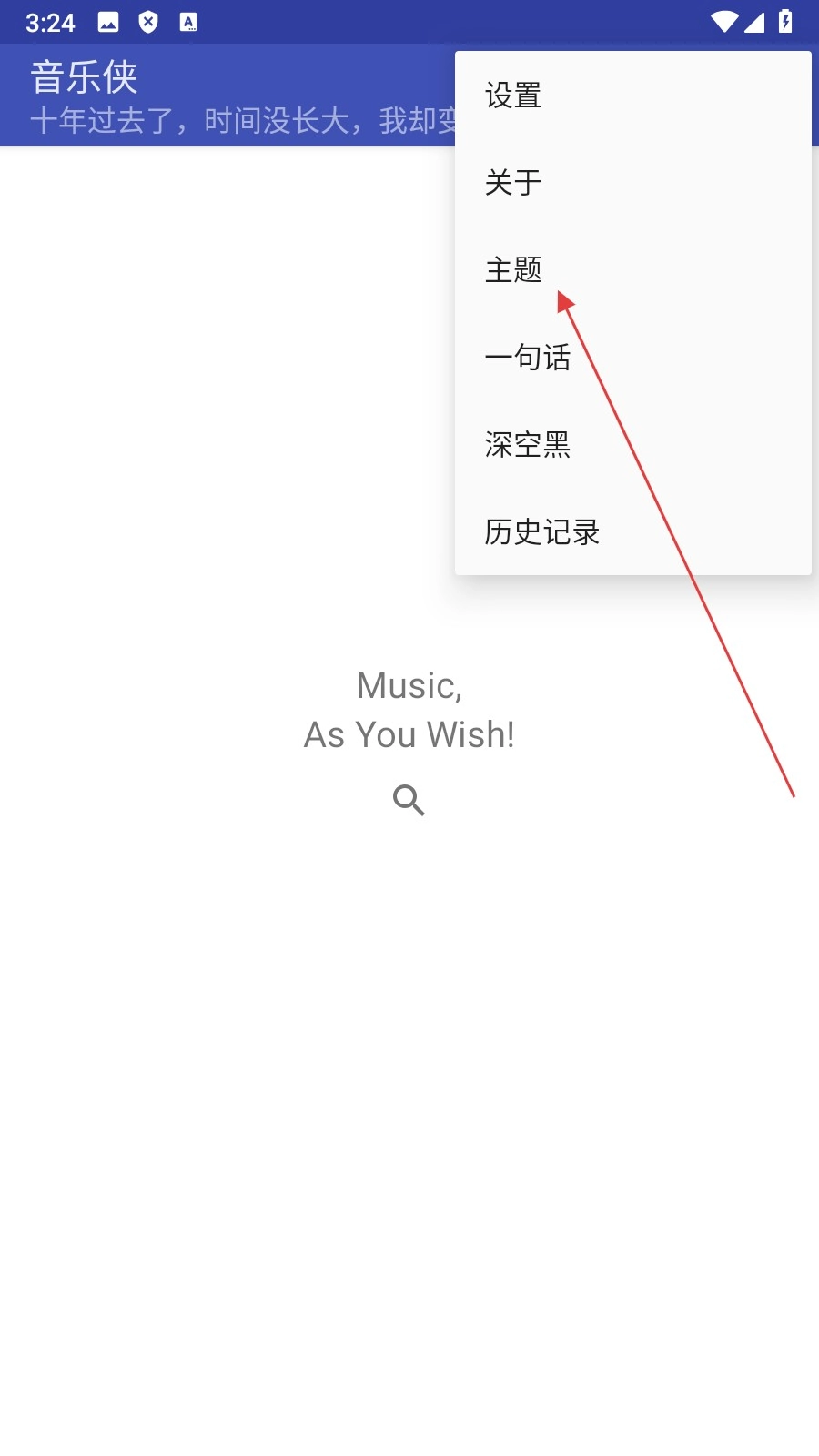在音乐侠的主界面上,找到并点击右上角的三点菜单按钮,这样就能展开功能选项列表了。