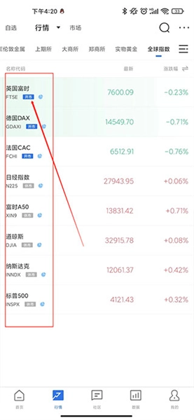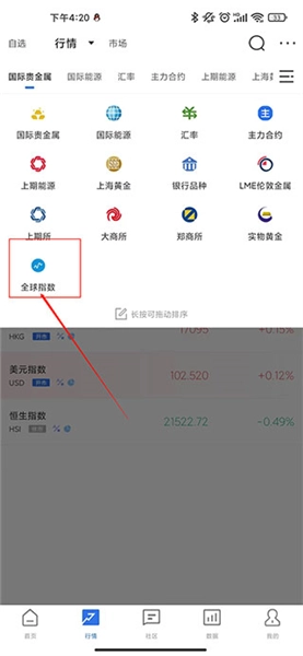 在上方点击行情选项,然后点击右边菜单栏,如图所示