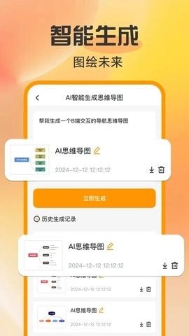 支持历史生成记录功能,用户能够回溯以往生成的思维导图,方便后续进行查阅、修改或复用。