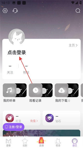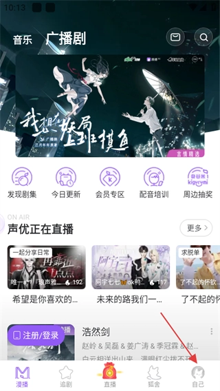 进入软件的广播剧页面后,点击底部的“自己”选项,即可进入个人页面。