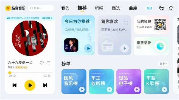 酷我音乐车机版和手机App的账号是互通的,个人歌单、收藏这类资产可以同步共享。