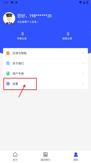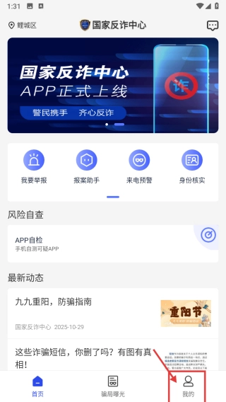 打开反诈服务类应用后,点击底部的“我的”选项,即可进入个人中心页面。