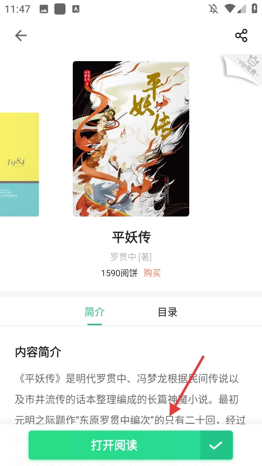 点击【打开阅读】,进入书籍阅读页面。