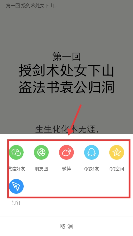 挑选恰当的分享途径(像微信好友、朋友圈之类),来执行书籍分享的操作。