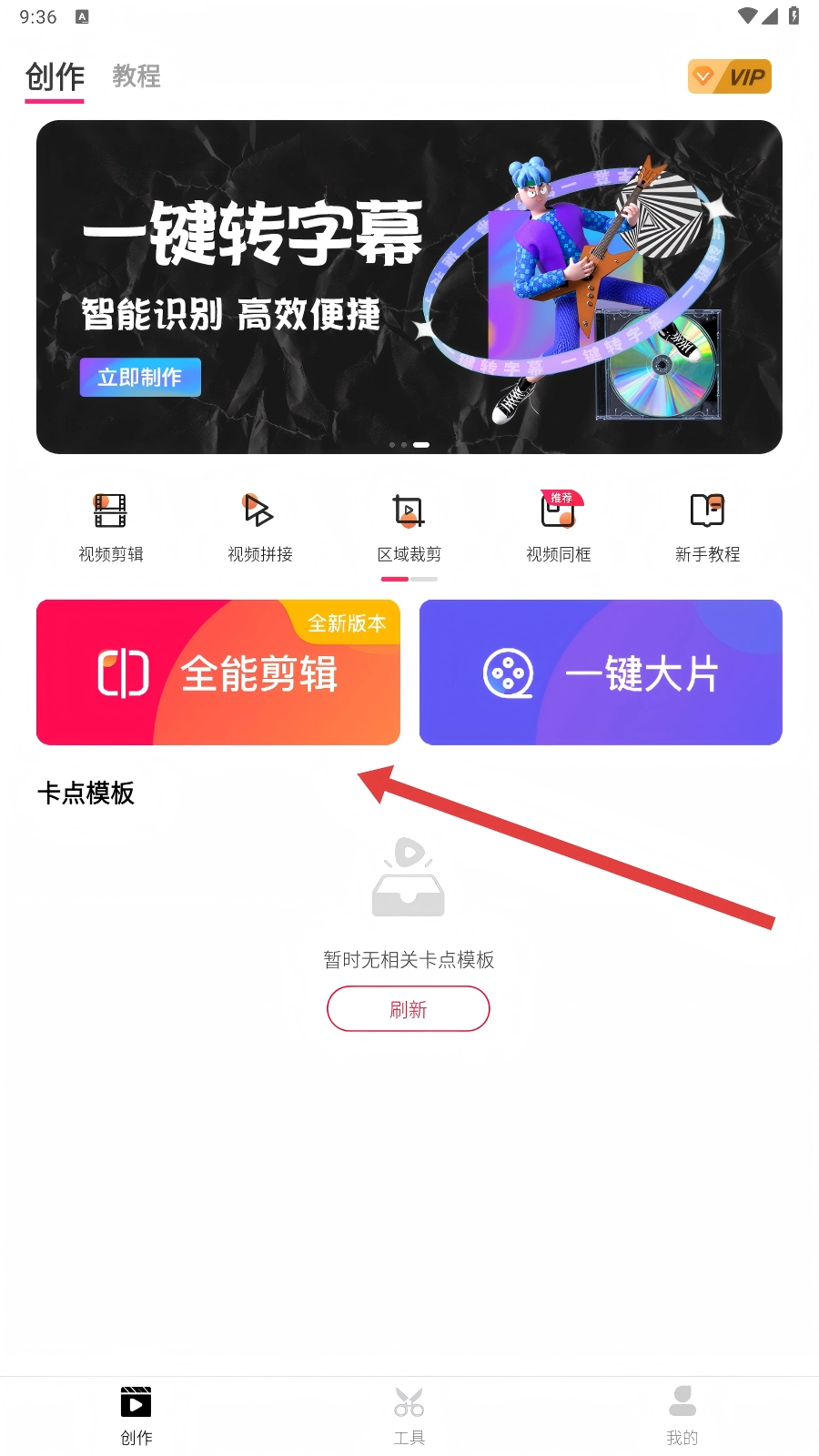 打开软件后,点击【全能剪辑】选项,就能进入视频编辑界面,开始进行视频创作了。