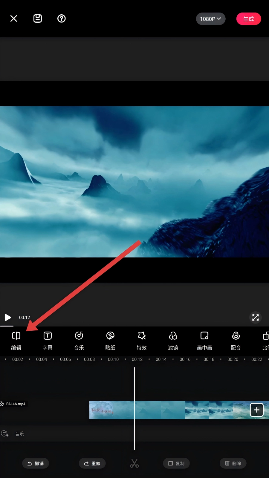 进入编辑界面后,我们点击【编辑】按钮,就能展开视频的基础编辑功能,为后续剪辑做好准备啦。