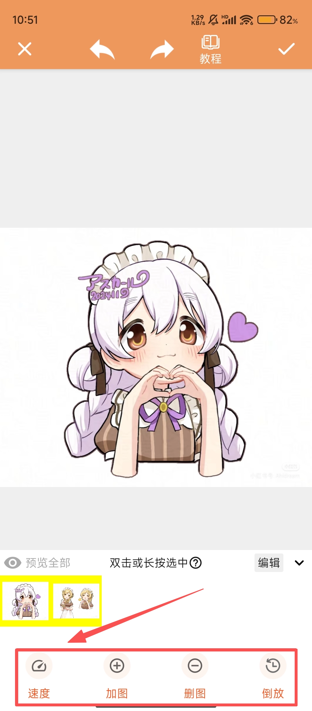 在编辑界面里,我们能够借助【速度】【加图】【删图】这些功能,对GIF的内容与效果开展个性化的调整呢。
