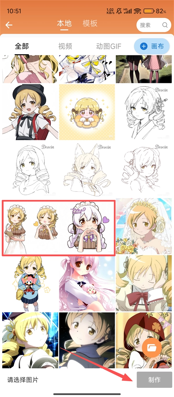 在素材选择页面,选好要用来制作GIF的图片后,点击右下角的【制作】按钮,即可进入编辑页面。