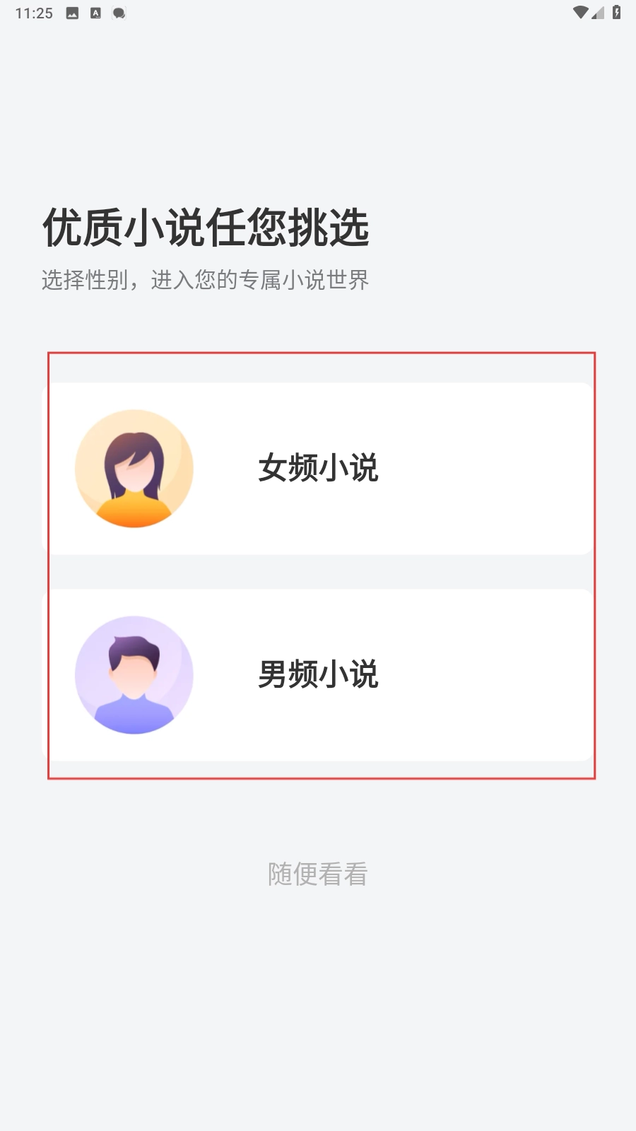 您可以选择【女频小说】或者【男频小说】,从而进入到对应的专属小说世界。