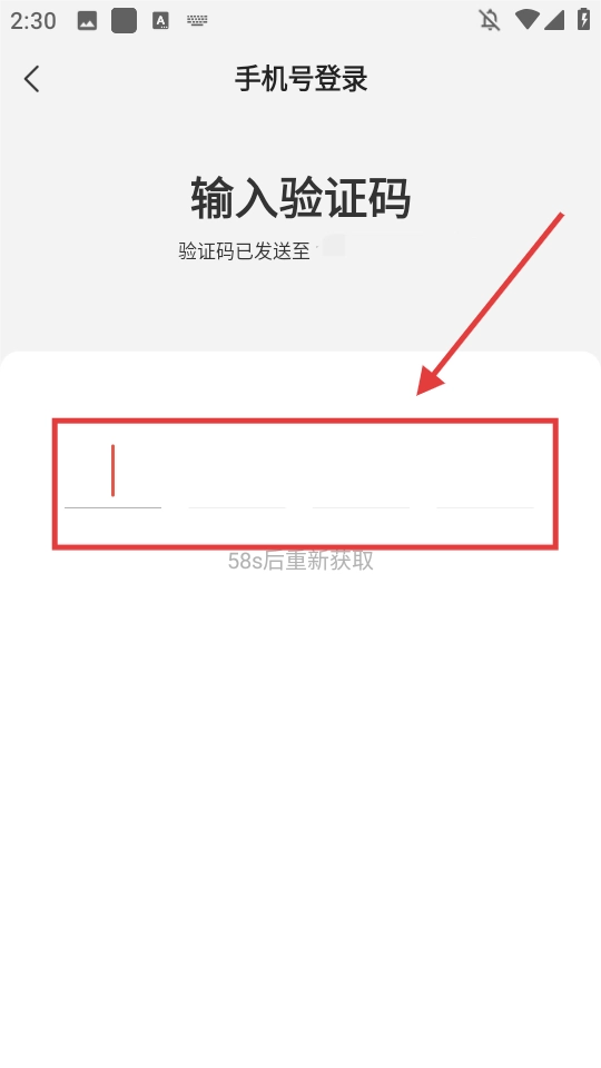 输入收到的验证码,完成账号登录操作。
