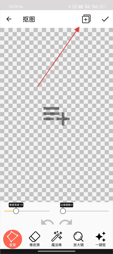 挑选一张你需要进行抠图处理的图片,点击图片上的加号,也可以点击右上角的加号按钮。