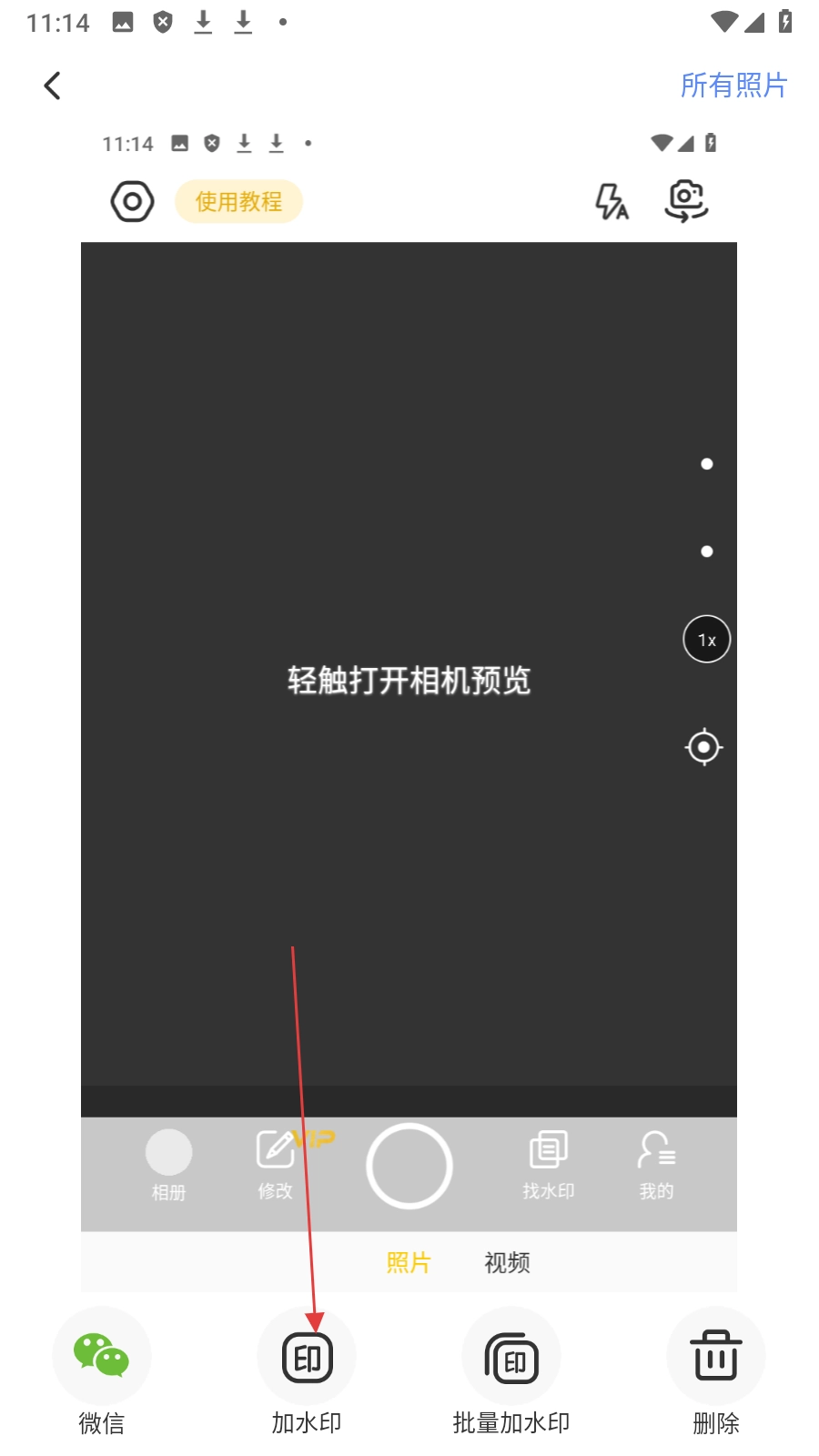 在照片选择界面,点击【添加水印】按钮,即可进入水印添加页面。